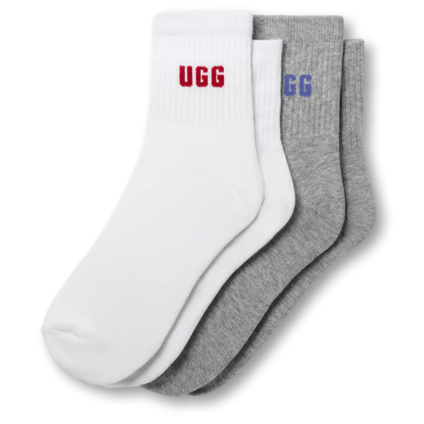 Dubbel zoveel paren, dubbel zoveel comfort. Onze Quinlin Logo-kwartsokken is een essentiële set met twee paar sokken van kwartlengte, gemaakt van een zachte katoenmix met verantwoord katoen en afgewerkt met het grafische UGG®-lettertype.