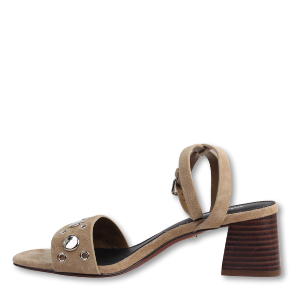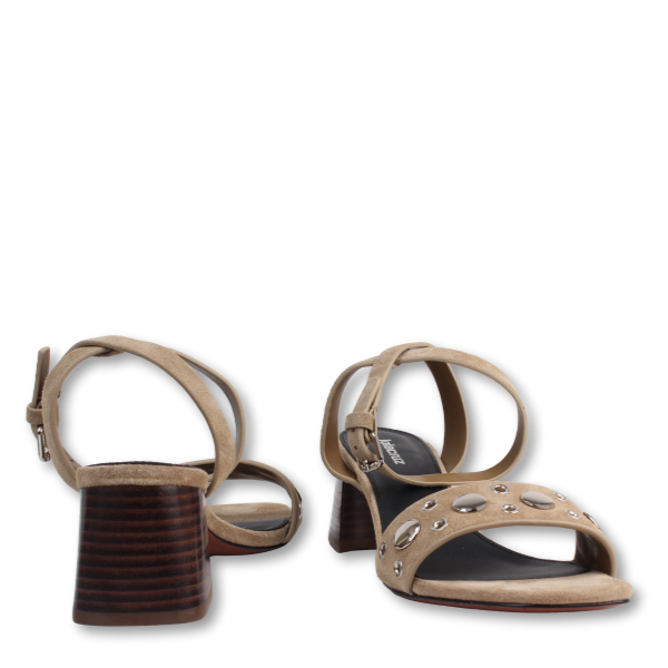 De Maïna sandalen van Lola Cruz in taupe suède zijn sandalen met blokhak die een moderne stijl combineren met comfort. De vierkante neus geeft structuur en een stoere uitstraling, terwijl de studs en veteroogjes een eigentijdse en verfijnde touch toevoegen. De blokhak van 5,5 cm biedt stabiliteit en een elegante hoogte, waardoor ze perfect zijn voor een urban look, casual uitjes of chique outfits.