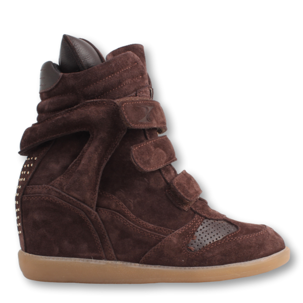 De Jae-yy is een hoge sneaker met een verborgen sleehak die sportief comfort combineert met een vrouwelijke touch. De decoratieve studs op de hiel zorgen voor een opvallend detail, terwijl de combinatie van hoogwaardig suède en leer een luxe afwerking geeft. Een opvallend merklabel voegt een subtiele, statement touch toe. Dankzij de handige klittenbandsluiting heeft de sneaker een speelse, moderne look en is hij gemakkelijk te dragen.