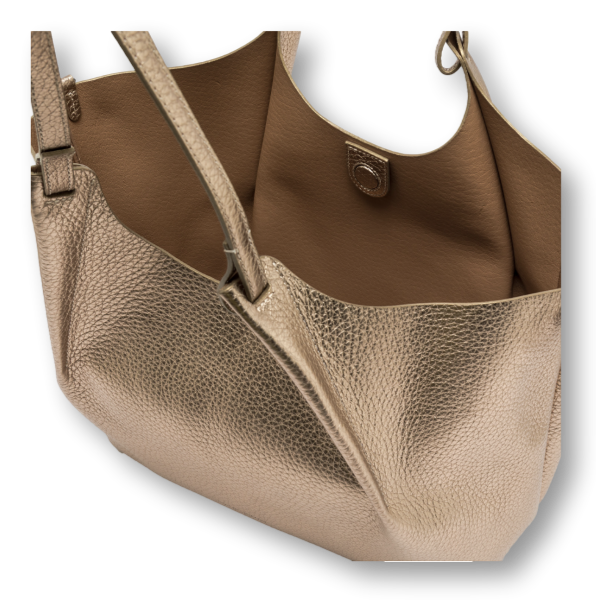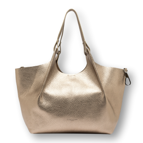 De iconische Dua-tas, vervaardigd uit dubbel bubbelleer, valt op door zijn unieke textuur. De tas heeft een ongevoerd compartiment, een bovenrand van gehamerd leer en dubbele handvatten in dezelfde kleur. Praktisch en essentieel, perfect om elke outfit stijlvol te verfraaien. De tas kan ook als handtas over de schouder gedragen worden. Afmetingen: 34 x 38 x 16 cm.