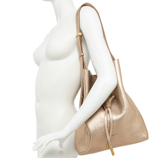 Sienna is de nieuwe tas van Gianni Chiarini Firenze, gekenmerkt door een zacht en vrouwelijk silhouet, perfect om zowel casual als meer verfijnde outfits stijlvol af te maken. Gemaakt van maxi grain dubbel leer, is de tas afgewerkt met contrasterende stiksels die de lijnen accentueren. De tas heeft één compartiment met magnetische sluiting en is versierd met iconische metalen details zoals de dubbele logo-lus en metalen uiteinden. Uitgerust met een praktische clutch met ritssluiting. Afmetingen: 30x34x11 cm.